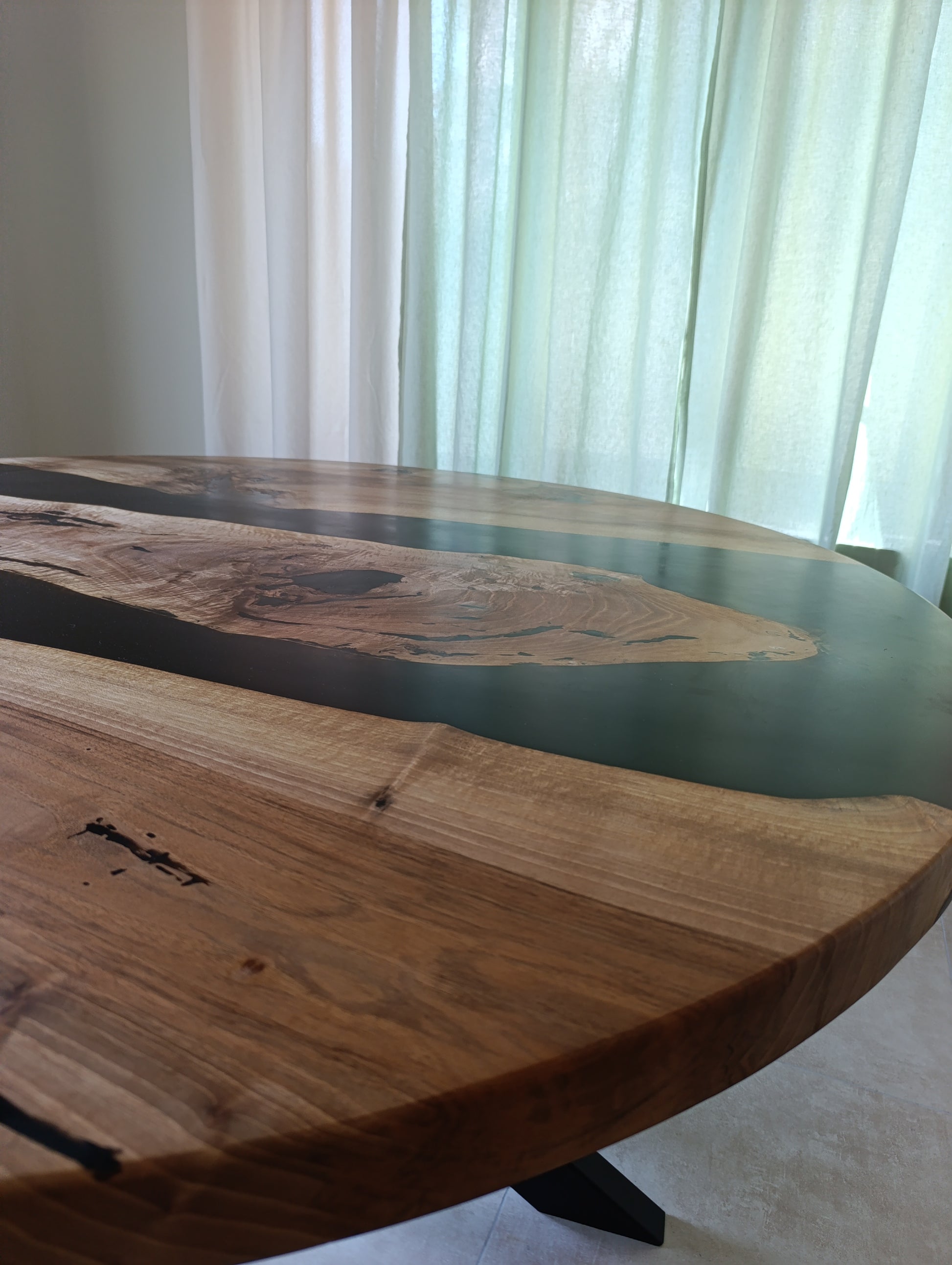 Puoi scegliere il tipo di legno, il colore della resina, la finitura e le dimensioni del tavolo. Ogni creazione è fatta su misura per te.